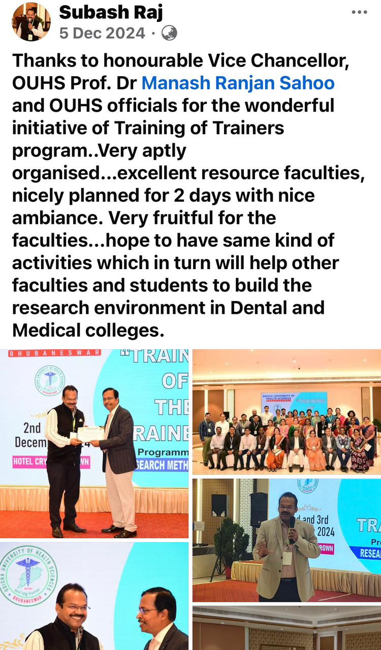 Odisha University of Health Sciences constituted Research Ethics Committee of OUHS as per guideline and this committee... Read more >>